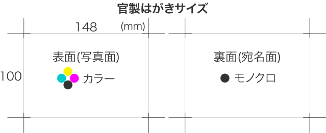 通常はがき(148x100mm)コート紙180kg、表4cx裏1c |