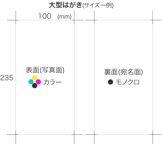 大型はがき(235x100mm)コート紙180kg、表4cx裏1cの場合の参考価格 |